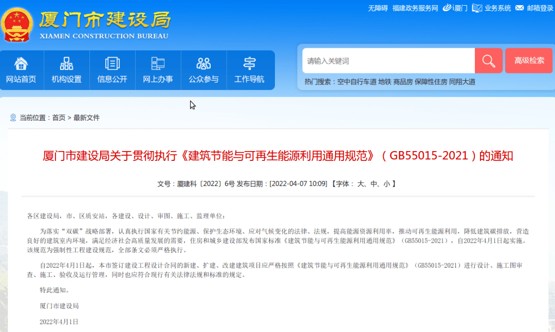 厦门市建设局发布《建筑节能与可再生能源利用通用规范》(详见下图)